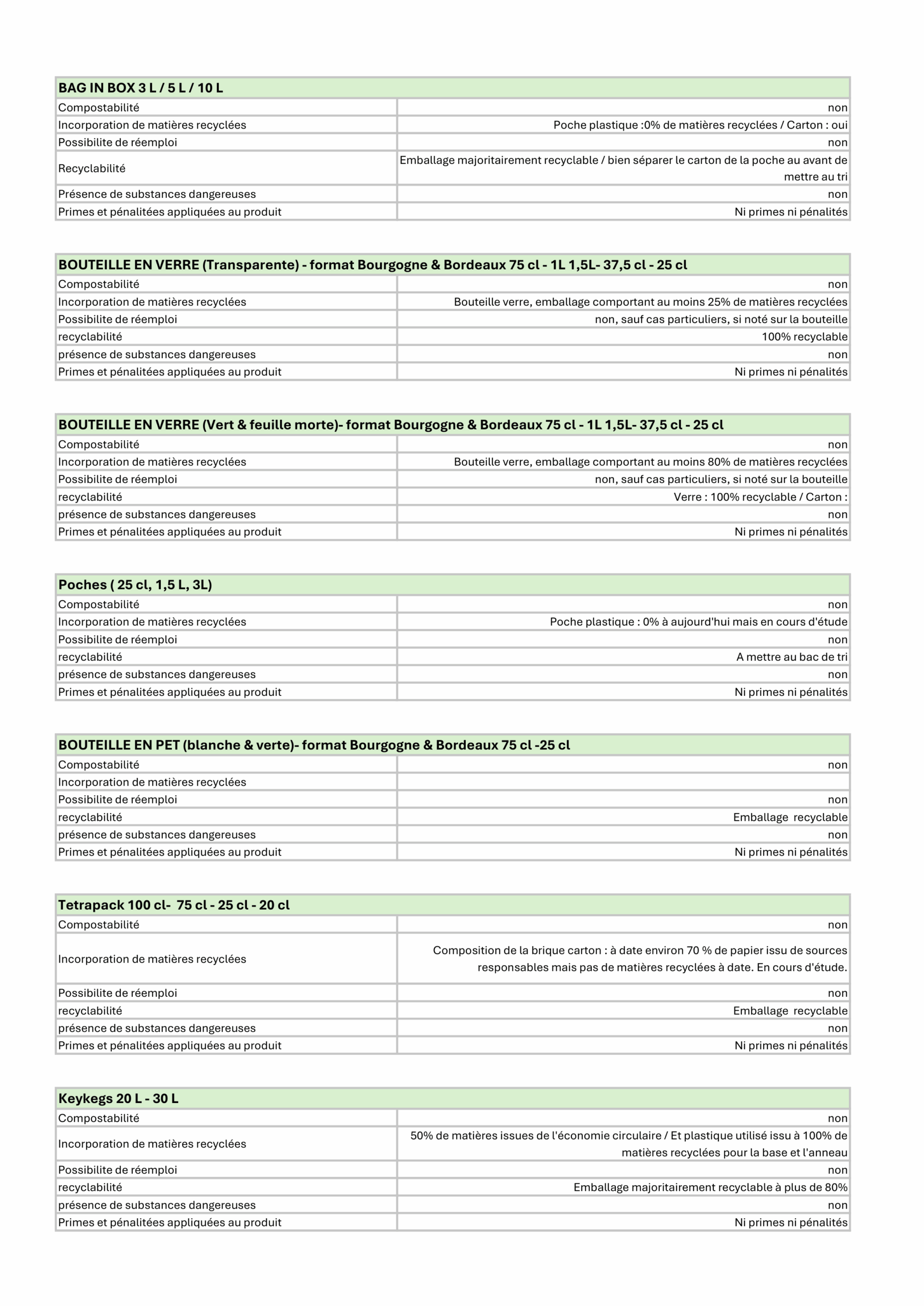 Below is a detailed overview of the information for each type of packaging.